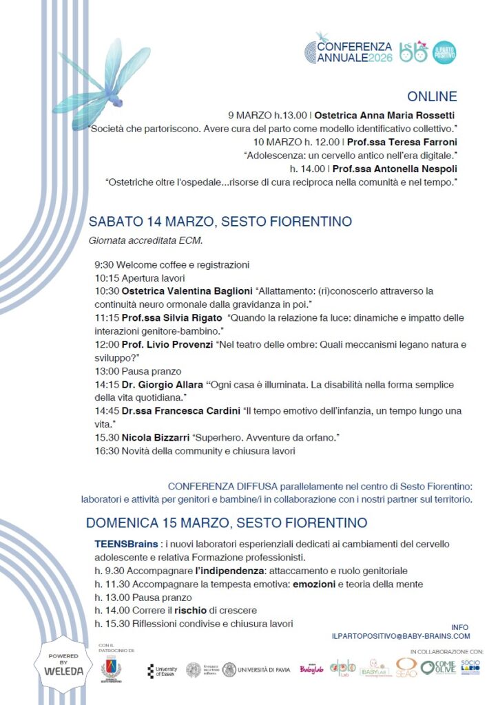 Ci sono eredità luminose, a volte messe in campo con gesti istintivi e inconsapevoli da chi non poteva sapere dell’esistenza di riferimenti scientifici. E eredità da rivedere perché si possano riaggiornare. Con l’occasione del lancio dei nuovi Laboratori TEENSBrains dedicati ai genitori di adolescenti, BabyBrains Il Parto Positivo declina la Conferenza Annuale 2026 sul tema della prospettiva a lungo termine di chi -in qualsiasi forma- si occupa di cura. Per tutti coloro che scelgono di ricordare che stare al mondo significa inevitabilmente andare oltre se stessi: lasciando tracce per i figli e la società intera. Senza determinismo e al di fuori di ogni controllo (e per fortuna!). Con presenza e luce nello sguardo.